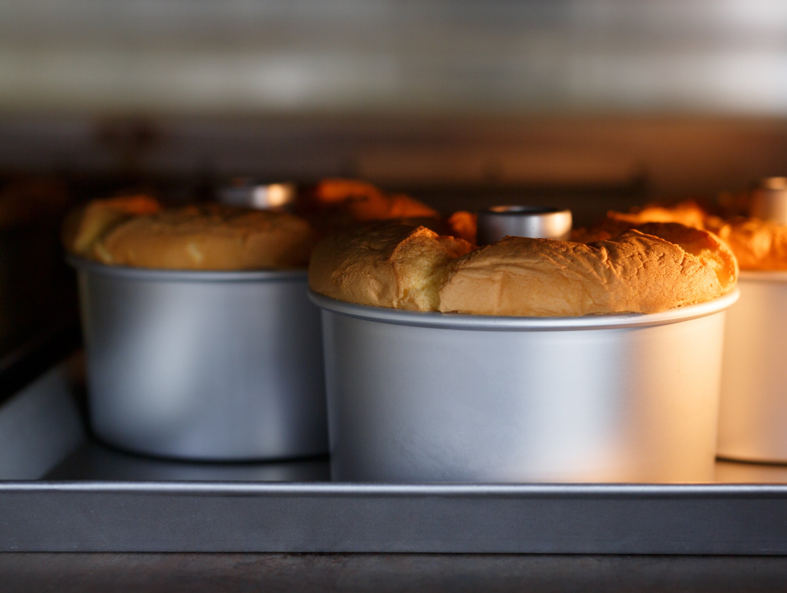 シフォンケーキだからこそ、素材の持つ香り、味わいをそのまま生かしたい。地元が誇る最高級卵「奥久慈卵」の風味を生かすことを第一に考え、小麦、砂糖、油を選び抜きました。そしてもうひとつ追求したのは、極限まで潤いある、きめ細やかな口あたりです。10年かけてたどり着いた自信のレシピで、少量ずつ丁寧に焼き上げています。